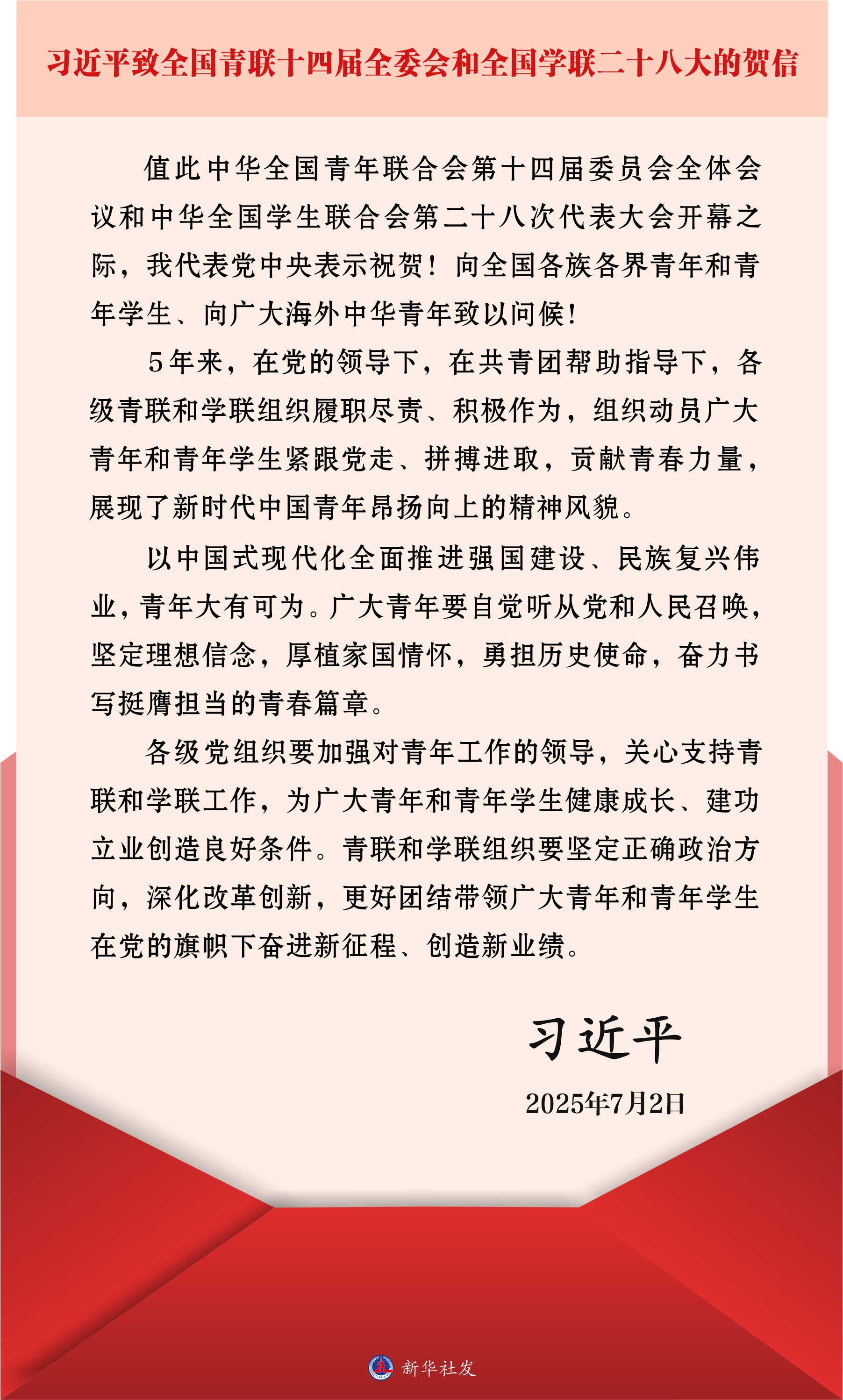 习近平致信祝贺全国青联十四届全委会全国学联二十八大召开强调